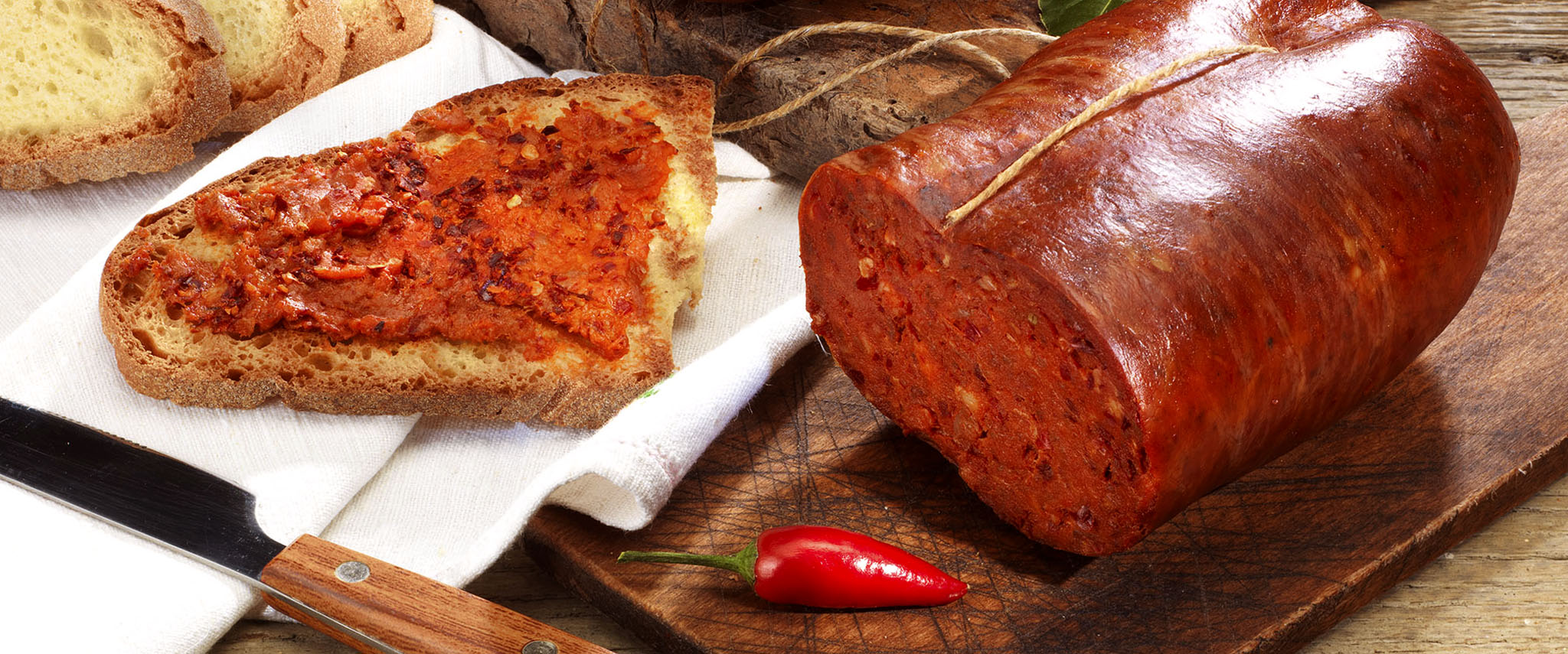 'Nduja di Spilinga con cipolla rossa di Tropea Calabria I.G.P.