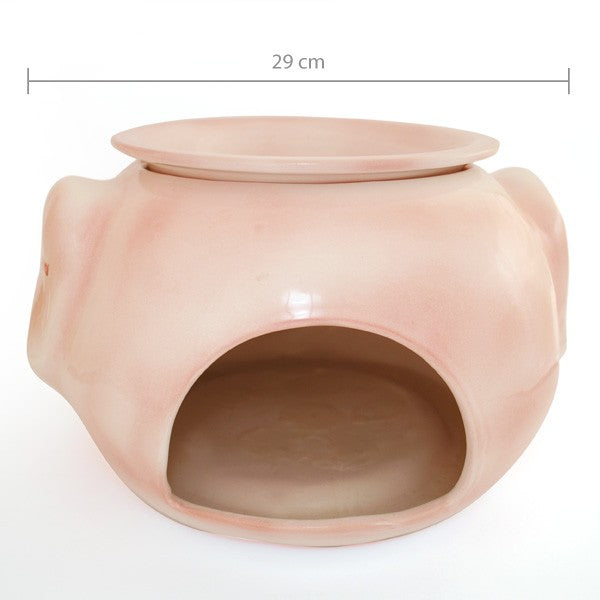 "Formato gigante" : Scaldandujotto a 2 pezzi Gigante. Composto dalla testa in ceramica del maialino e dalla ciotola gigante estraibile. Utilizzato da SAP per le degustazioni durante le manifestazioni, permette di riscaldare una maggiore quantità di prodotto.
