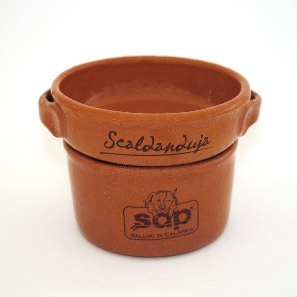 Scaldanduja in ceramica nella sua forma classica. E' un funzionale centro tavola che si usa per riscaldare la Nduja esaltandone così il gusto e la spalmabilità. Ideale per una serata in compagnia di ospiti.